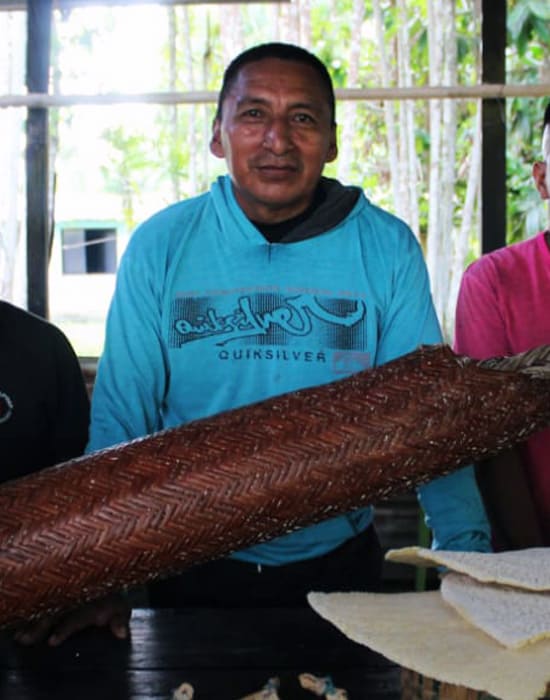 Fortalecemos la gastronomía amazónica mediante productos innovadores y saludables (mermeladas, pulpas de frutas, ajíes). Promovemos la producción agrícola del conuco y patio, así como la cría de animales para el consumo e intercambio, integrando saberes ancestrales con la sostenibilidad económica y ambiental.